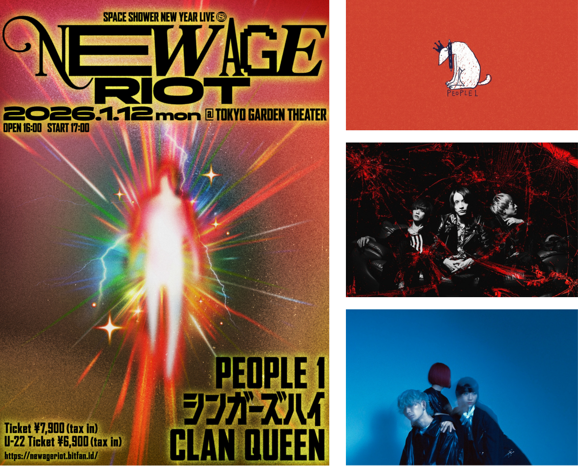スペースシャワーが新成人世代にお届けするライブ企画「SPACE SHOWER NEW YEAR LIVE NEW AGE RIOT」開催決定!PEOPLE 1、シンガーズハイ、CLAN QUEENが新春の東京ガーデンシアターで激突!